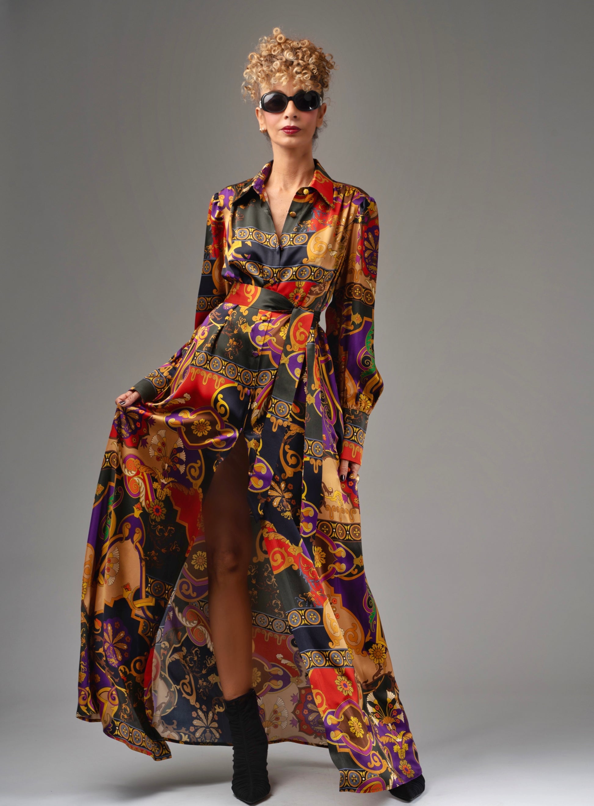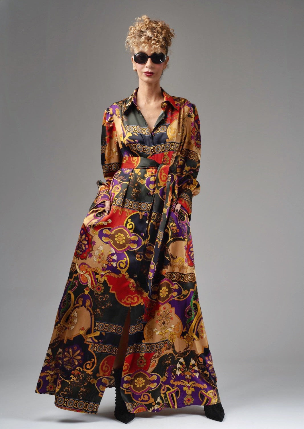Robe chemise boutonnée tout du long 100% soie.