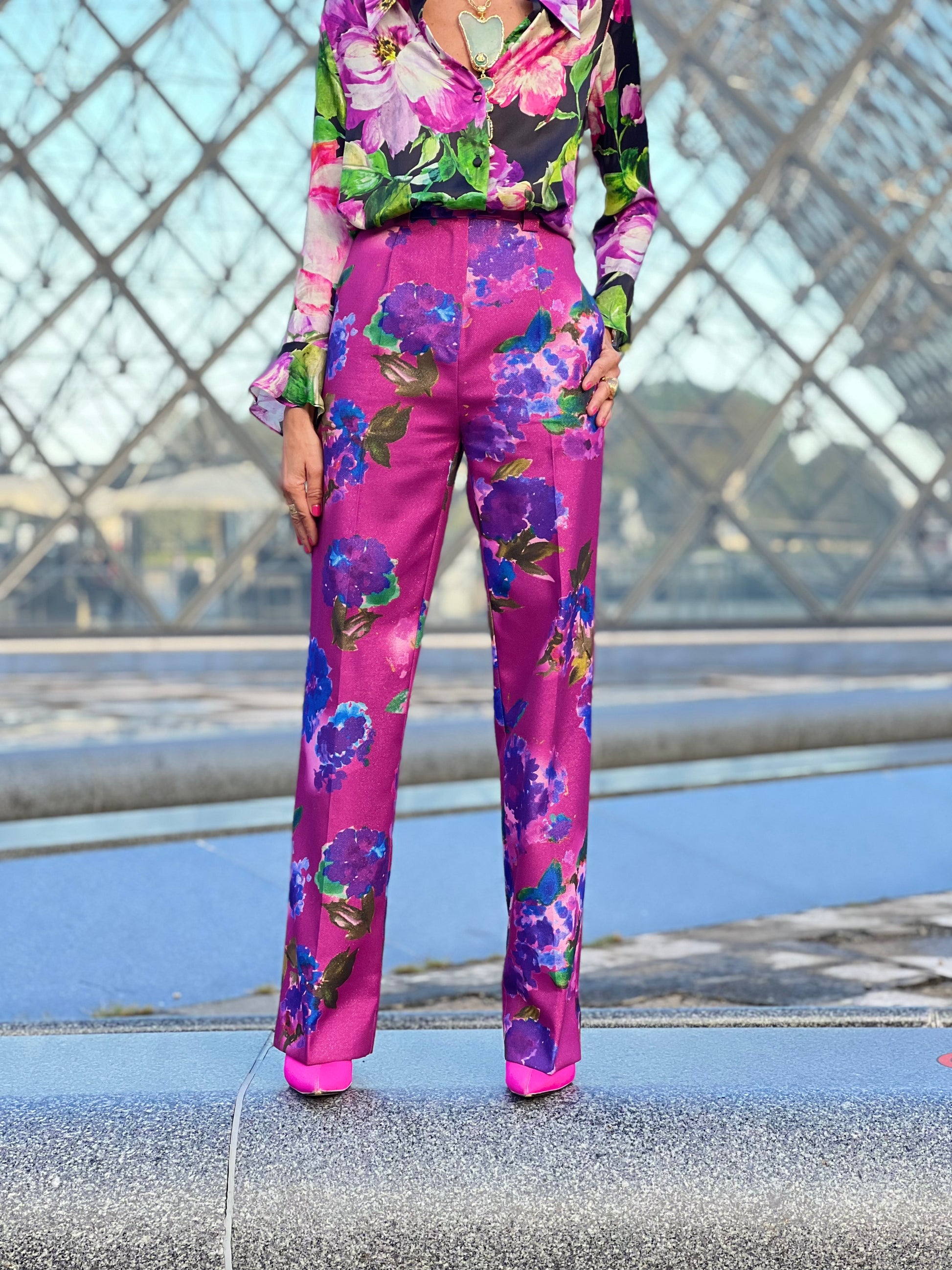 - Couleur rose fuchsia imprimé fleurs d’hortensia
