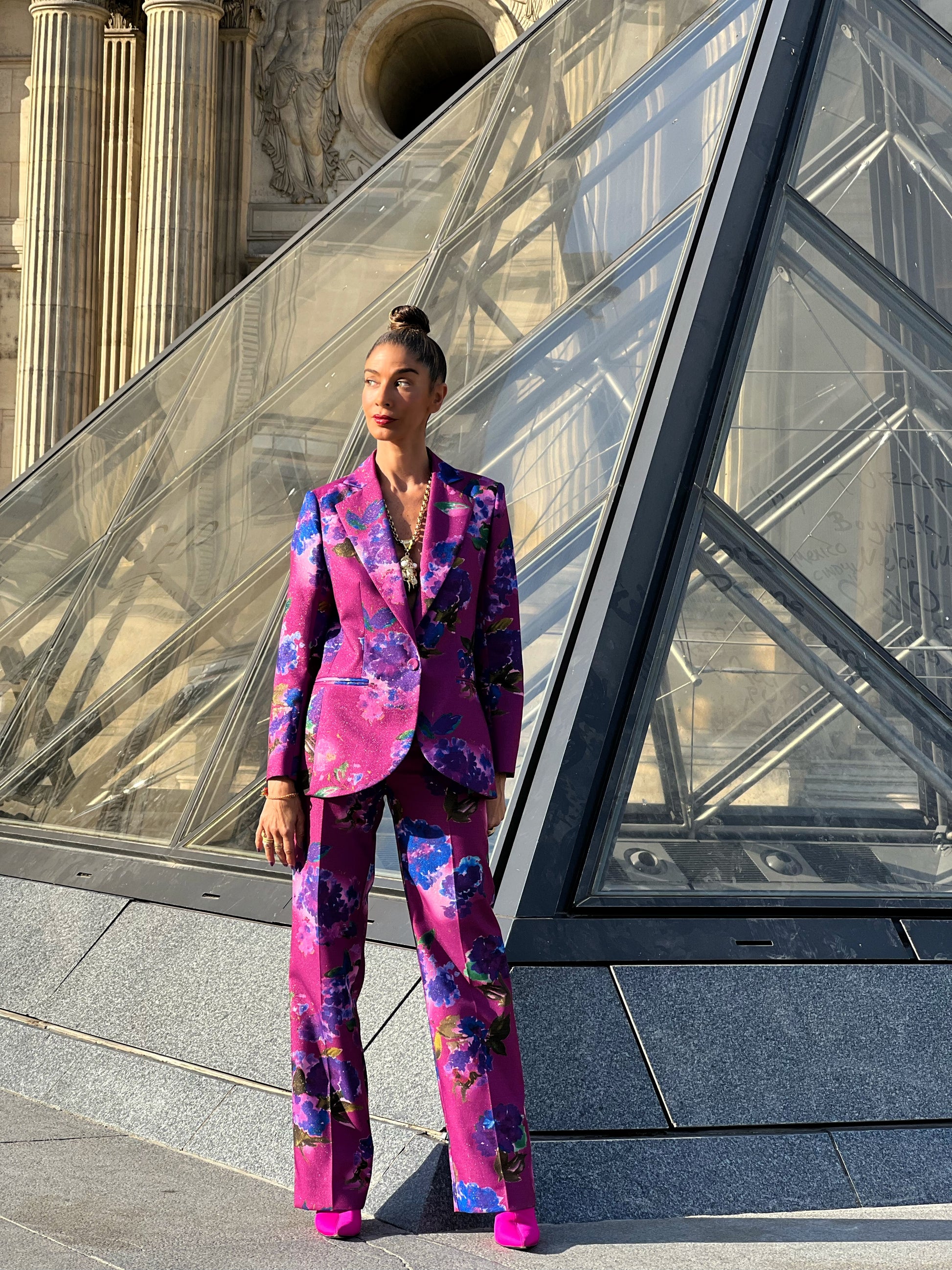 - Composition : jacquard lurex imprimé 100% polyester recyclé